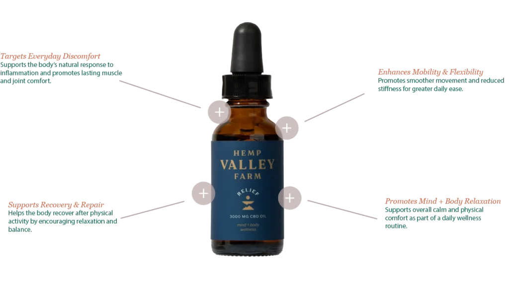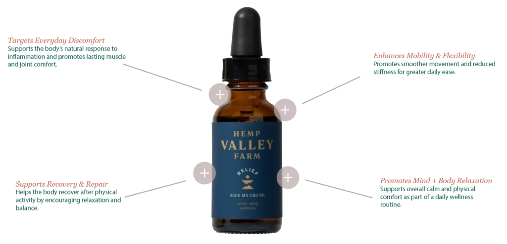 Hemp Valley Farm Relief CBD Oil (3000 mg) is a premium, full-spectrum tincture crafted from organically grown, non-GMO hemp to support daily comfort, recovery, and long-term wellness.